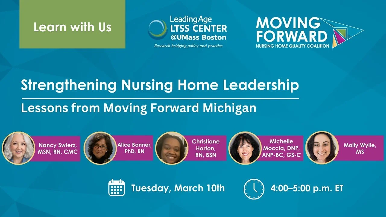This webinar shares lessons from the Moving Forward Michigan initiative, which tested a practical, affordable model to strengthen leadership capacity and QAPI efforts in under-resourced nursing homes facing ongoing workforce and operational challenges. Drawing on real-world implementation and evaluation, it highlights the critical role of coaching, along with tools and strategies that can be adapted to support quality improvement in other settings.